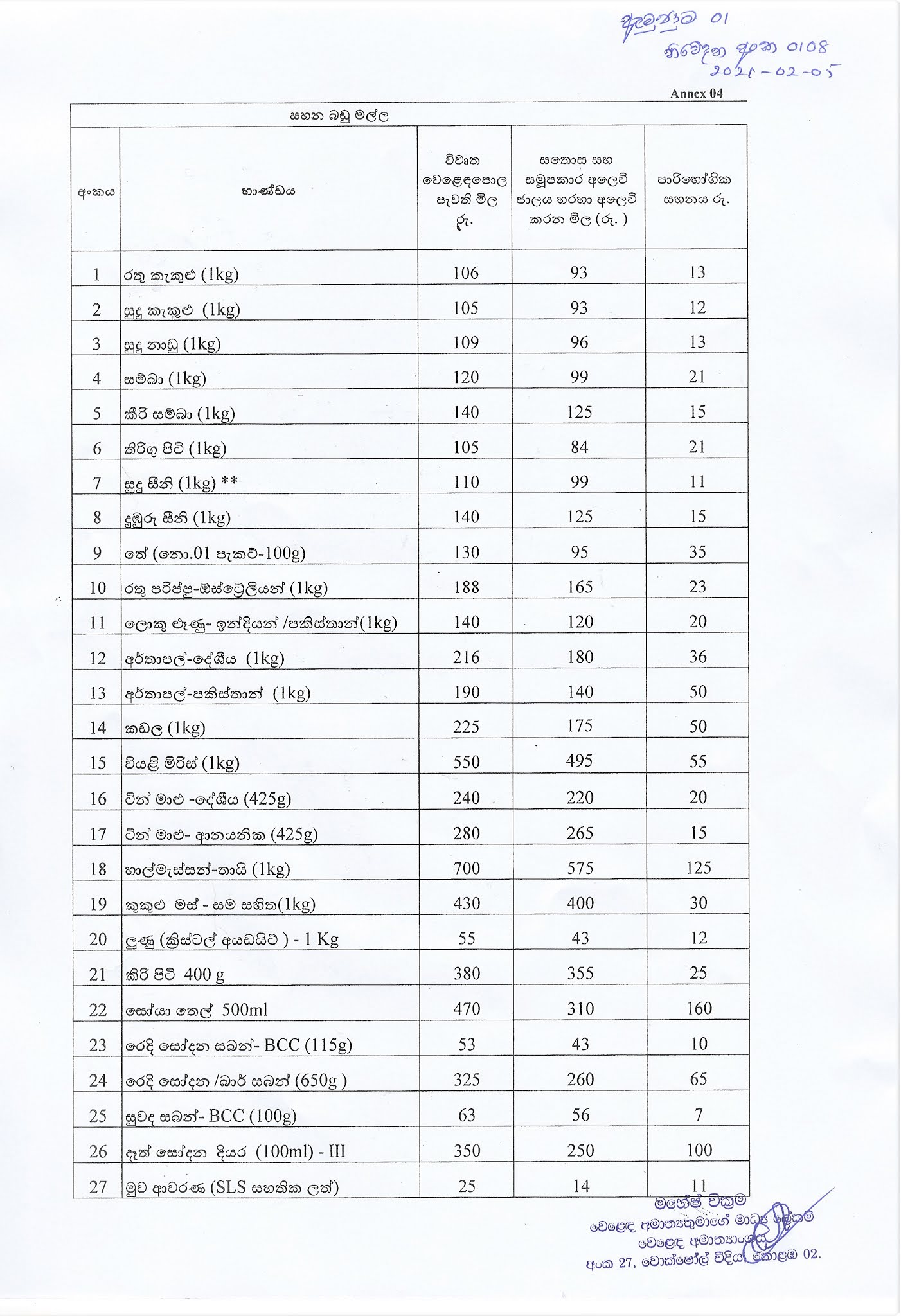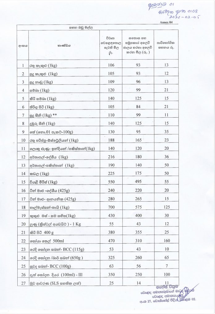 ලබන සඳුදා සිට මෙම භාණ්ඩ නව මිල ගණන් යටතේ සතොස සමූපකාර හා Q-shop හරහා පාරිභෝගික ජනතාවට නිකුත් කරන බවද අමාත්යවරයා කියා සිටියාග