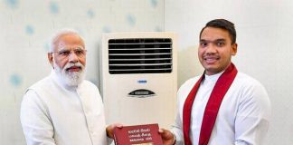 Namal Rajapaksa presents trilingual copy of Bhagvad Gita to Modi.