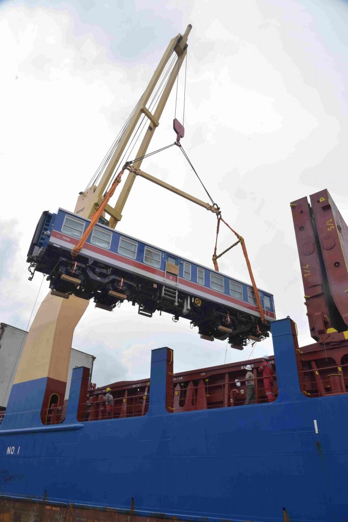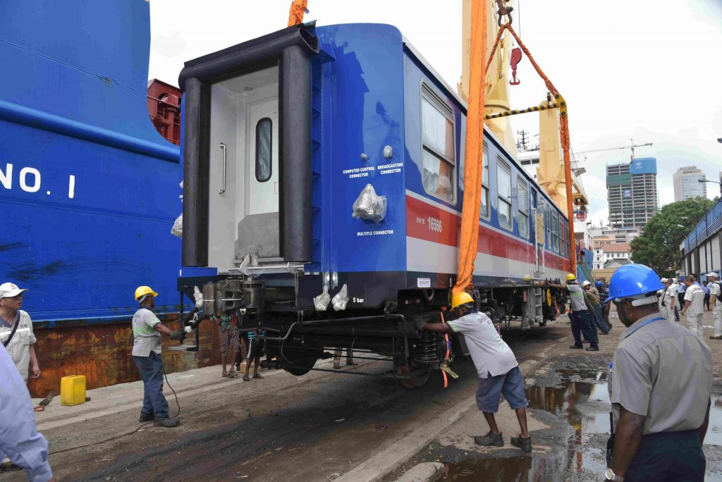 The state-of-the-art Class S14 power sets brought down from China reached the Port of Colombo today (13). These power sets, especially tailor-made for up country road line, is valued at US$ 10.3 million. Nine such power sets have been brought to Sri Lanka.