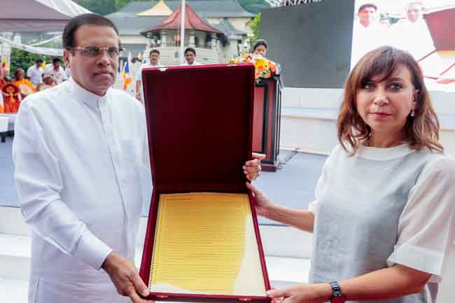 The ceremony was held under the patronage of Maha Sangha including the Maha Nayaka Theros of the Tri-Nikayas and with the participation of President Maithripala Sirisena at the Maha Maluwa (Great Terrace) of the premises of the Temple of the Sacred Tooth Relic on Saturday (March 23).