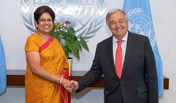 The new Permanent Representative of Sri Lanka to the United Nations, Kshenuka Senewiratne, presented her credentials to UN Secretary-General António Guterres on Wednesday.