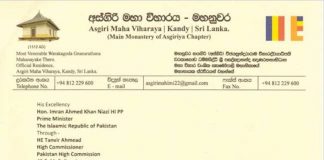 ප්රියන්ත කුමාරට සාධාරණය ඉටුකරන ලෙස අස්ගිරි මහනාහිමිගෙන් පාකිස්තානු අගමැතිට ලිපියක්.