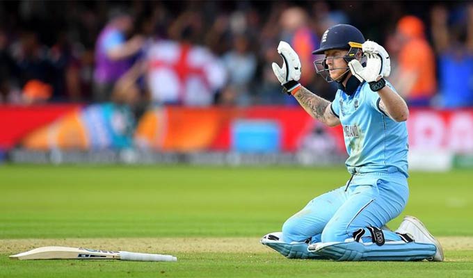 Chasing New Zealand’s 241, England needed nine runs from the final three balls when a throw by Martin Guptill deflected off diving Stokes’ bat for a boundary.